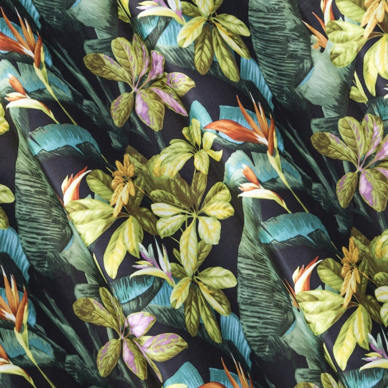 Jūsu iepirkumu grozs ir tukšs! Aizkars 140x250 Līvi melni zaļi lapas eksotiski ziedi gatavi cilpām velūrs