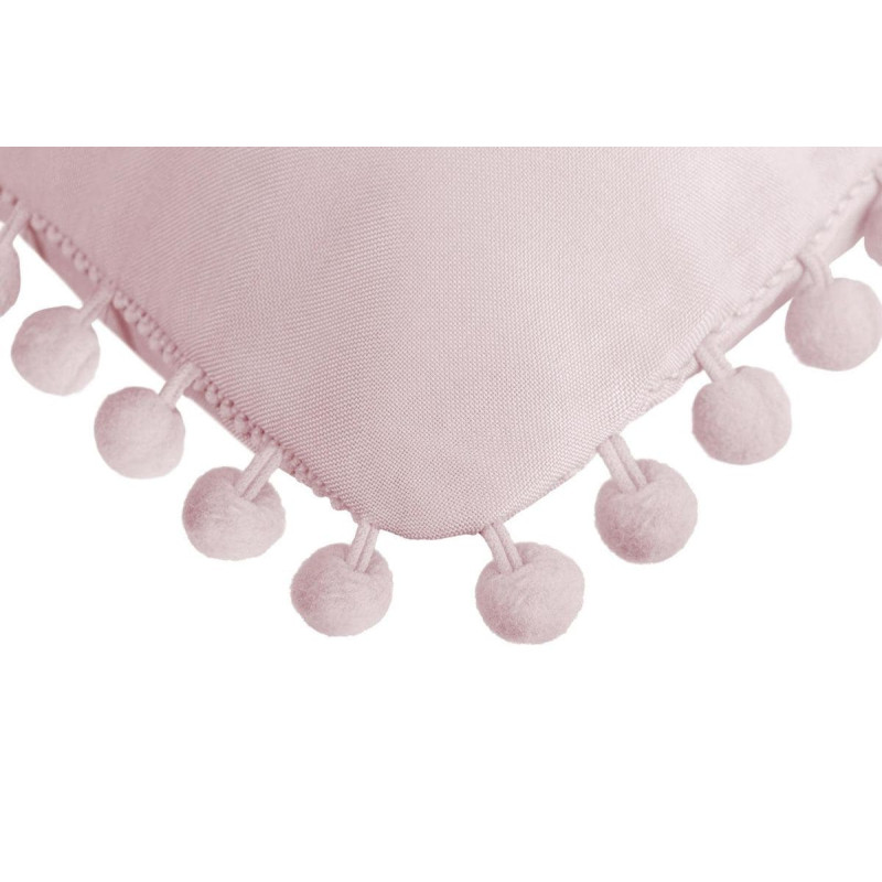 Jūsu iepirkumu grozs ir tukšs! Dekoratīvā spilvendrāna 45x45 Pūkains pūderrozā ar pomponiem