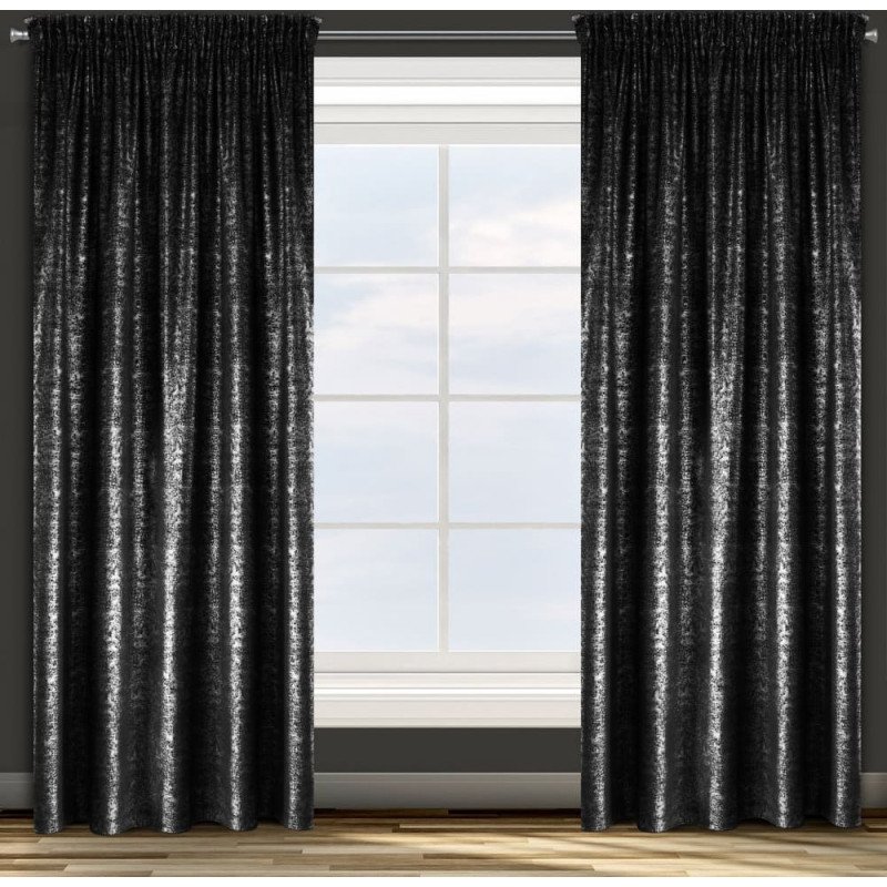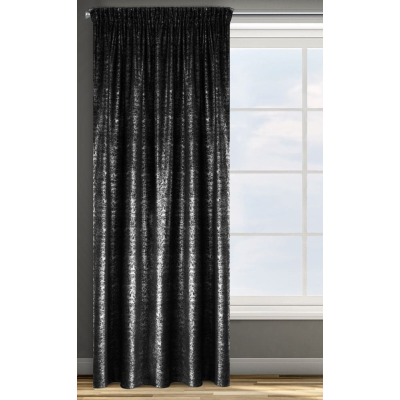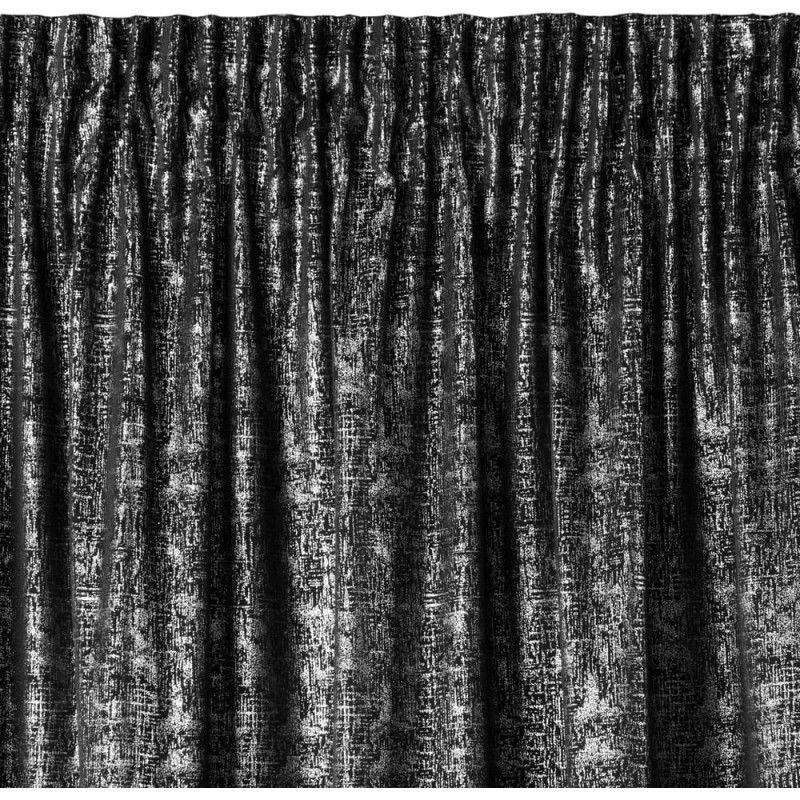 Jūsu iepirkumu grozs ir tukšs! Aizkars 140x270 Kipras melns sudraba velūrs gatavs uz lentes ar skaistu spīdīgu Eurocurtain apdruku