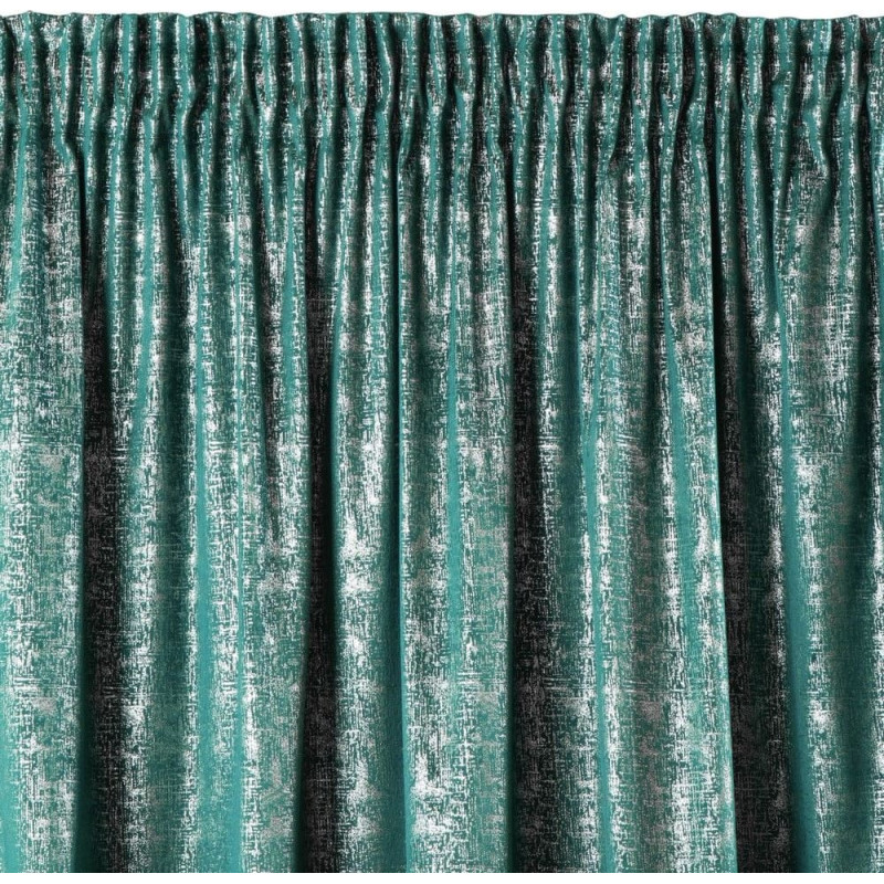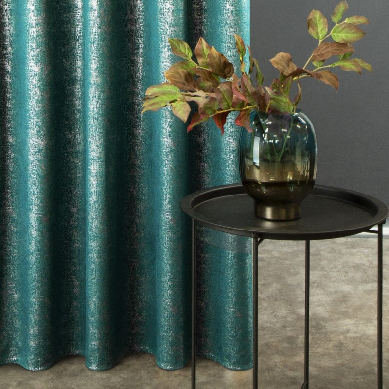 Jūsu iepirkumu grozs ir tukšs! Aizkars 140x270 Kipras tirkīza sudraba velūrs gatavs uz lentes ar skaistu spīdīgu Eurocurtain apdruku
