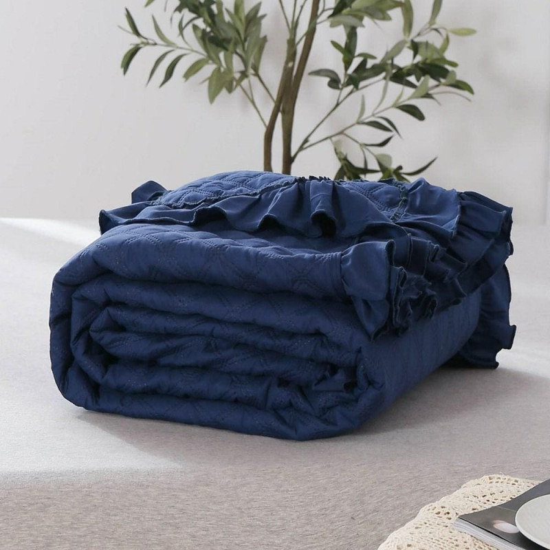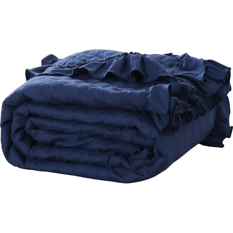 Jūsu iepirkumu grozs ir tukšs! Gultas pārklājs ar volānu 160x220 tumši zils Ruffy dekoratīvs glamūra rombs volāns