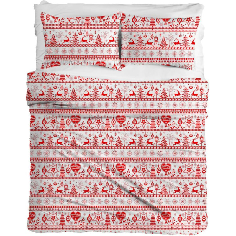 Jūsu iepirkumu grozs ir tukšs! Flaneļa gultasveļa 160x200 F-81A Ziemeļbrieži Ziemassvētku eglīšu sirsniņas Ziemassvētku sarkanas baltas