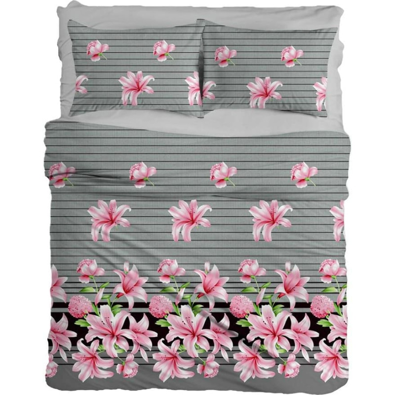 Jūsu iepirkumu grozs ir tukšs! Flaneļa gultasveļa 160x200 F-84A Lilijas svītras pelēki rozā ziedi