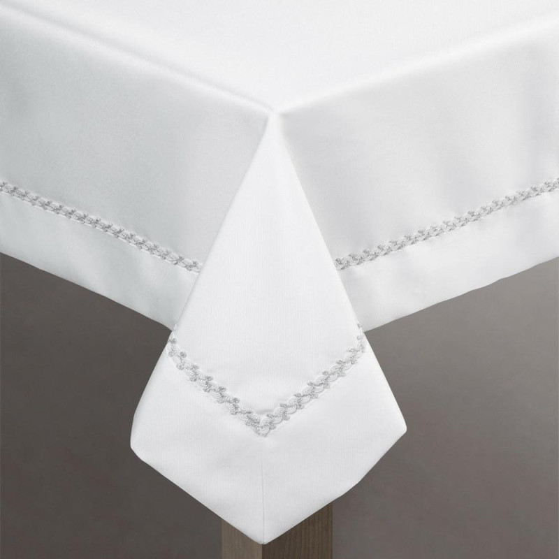 Jūsu iepirkumu grozs ir tukšs! Galdauts 145x240 Elima balta apdare ar sudraba elementiem kastītē