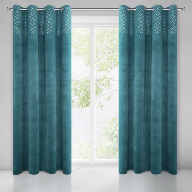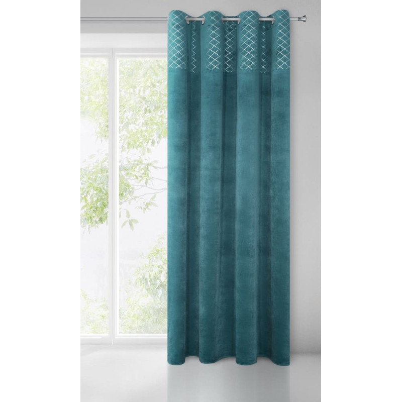 Jūsu iepirkumu grozs ir tukšs! Aizkars 140x250 Karina 2 tirkīza sudraba velūra dimanti, kas gatavi uz starplikām