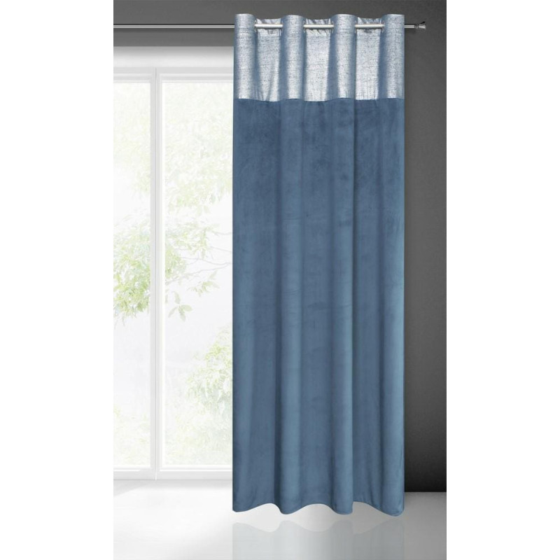 Jūsu iepirkumu grozs ir tukšs! Aizkars 140x250 Peri tumši zils sudraba velūrs, gatavs uz starplikām