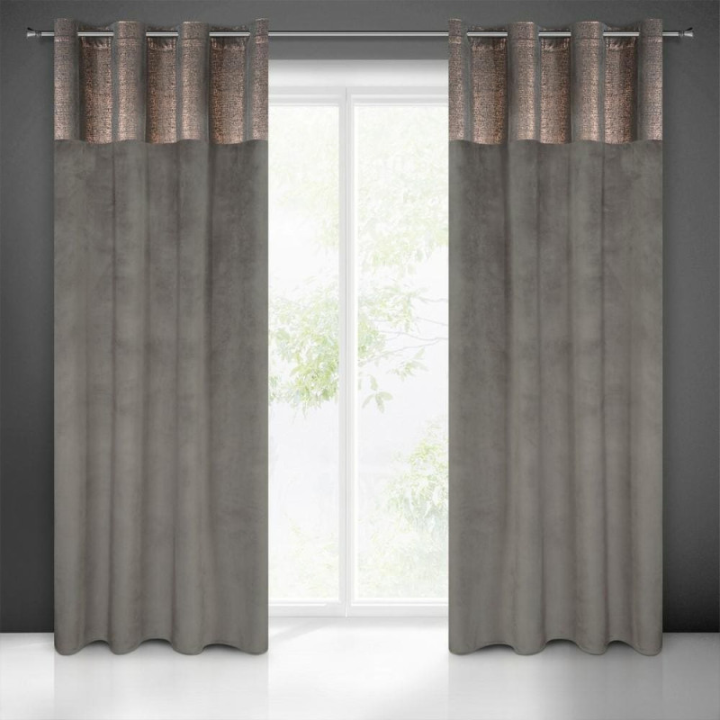 Jūsu iepirkumu grozs ir tukšs! Aizkars 140x250 Peri grafīta vara velūrs gatavs ar starplikām