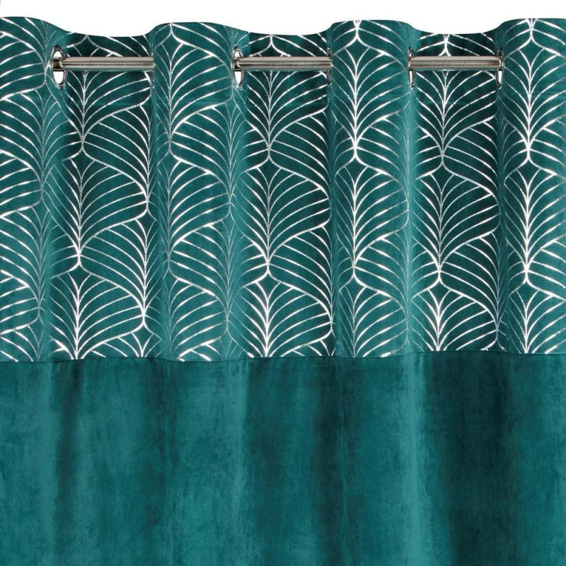Jūsu iepirkumu grozs ir tukšs! Aizkars 140x250 Lindi tirkīza sudrabs ar ģeometrisku velūra apdruku, kas gatavs uz starplikām