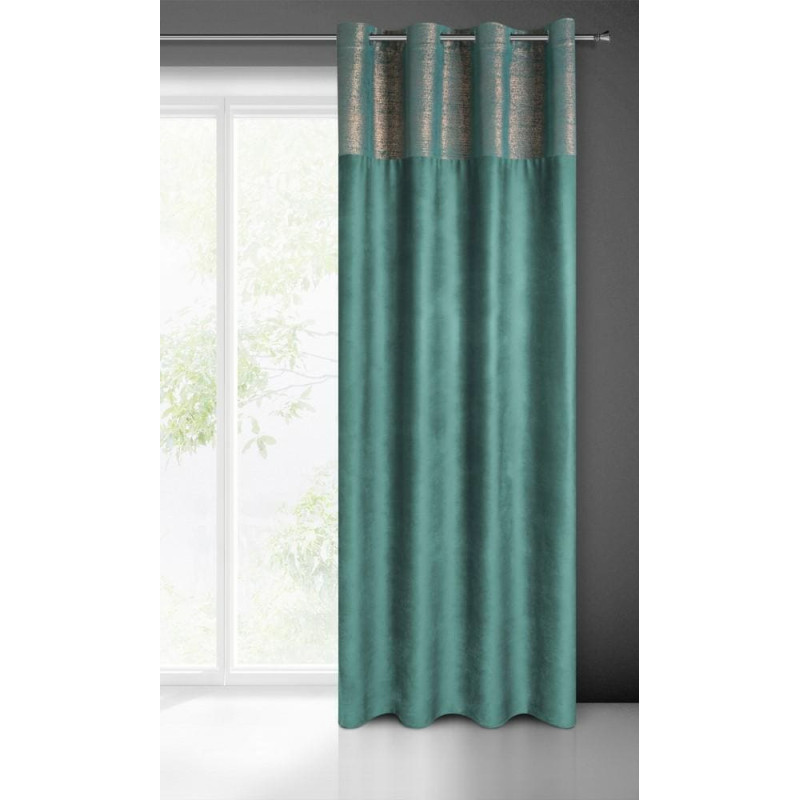 Jūsu iepirkumu grozs ir tukšs! Aizkars 140x250 Peri tirkīza tumšā vara velūrs gatavs ar starplikām