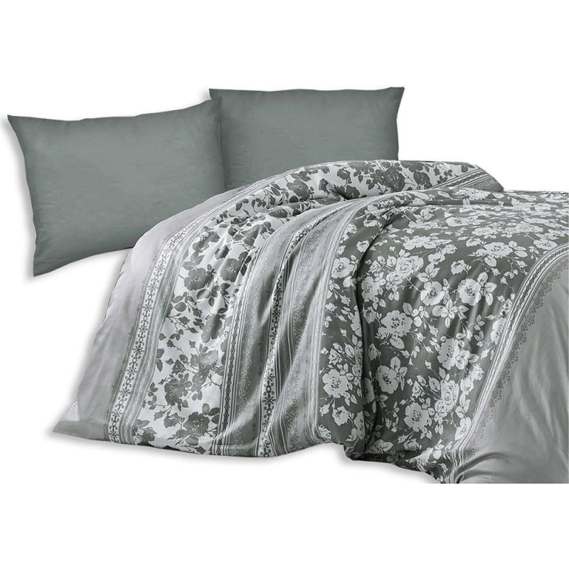 Jūsu iepirkumu grozs ir tukšs! Satīna gultasveļa 160x200 Alura 2 ziedi pelēki balti Exclusive