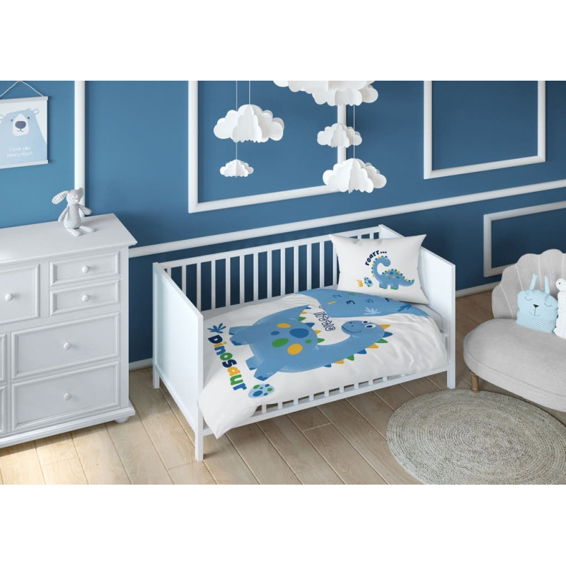 Jūsu iepirkumu grozs ir tukšs! Bambusa gultas veļa 100x135 Dinozauri zili balti 3532 B Dino divpusēja spilvendrāna 40x60 6312