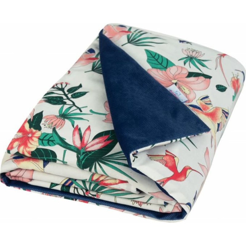 Jūsu iepirkumu grozs ir tukšs! Bērnu sega 75x100 Velvet 6 ziedi tumši zils balts botānikas kokvilnas mazulis