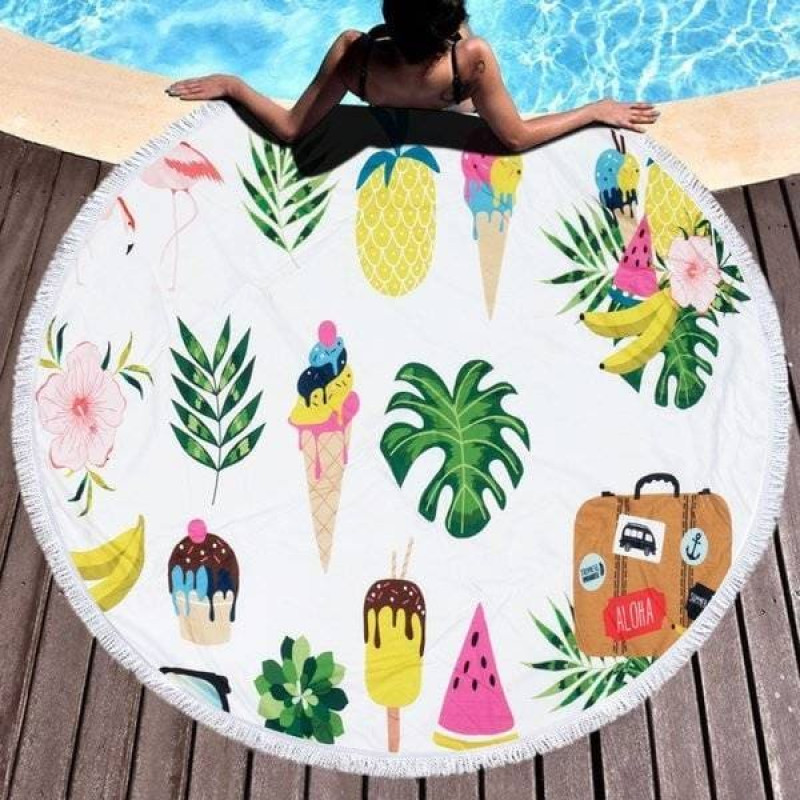 Jūsu iepirkumu grozs ir tukšs! Dvieļu apaļa pludmales sega Boho 15 Vasaras pikniks 150 cm mikrošķiedra 250g/m2 monstera lapas palmas saldējums ziedi koferis