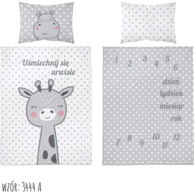 Jūsu iepirkumu grozs ir tukšs! Kokvilnas gultas veļa 100x135 3444 A Giraffe grey Hipcio Smile, bully 0938 bērnu žirafes spilvendrāna 40x60