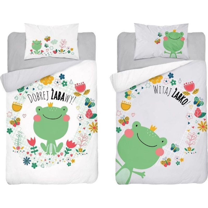 Jūsu iepirkumu grozs ir tukšs! Kokvilnas gultasveļa 100x135 3675 B Pelēka varde Priecājies Sveiki Żabko ziedi 3099 bērnu spilvendrāna 40x60