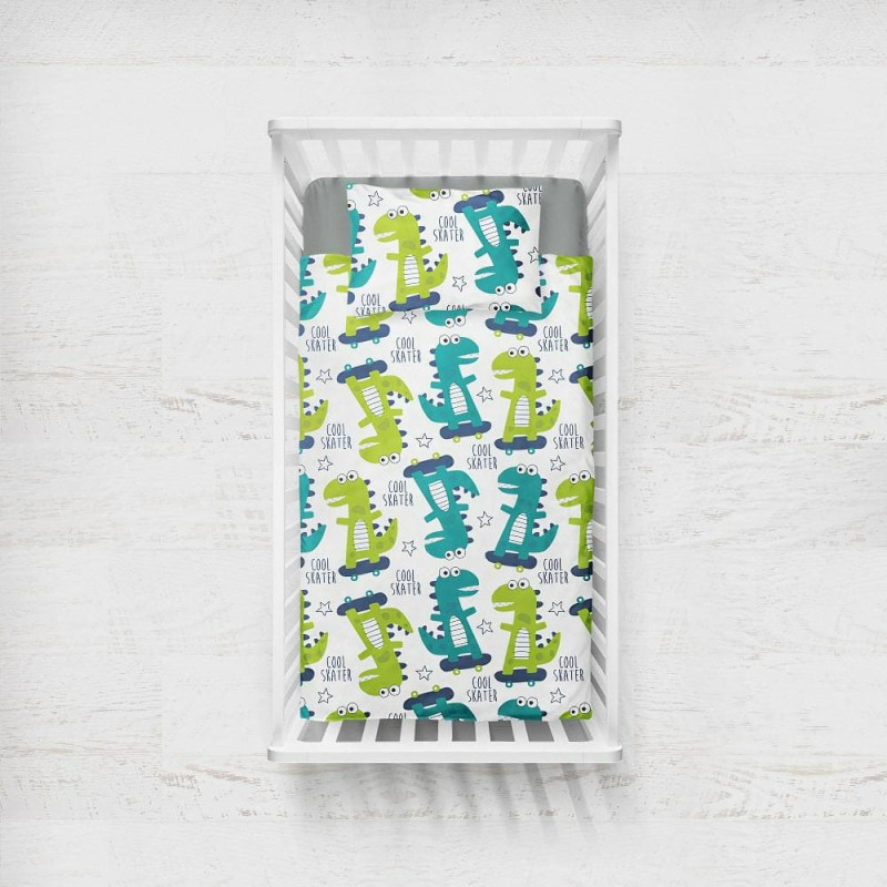 Jūsu iepirkumu grozs ir tukšs! Kokvilnas gultas veļa 100x135 Bąbelkowo 002 Zaļi un tirkīza dinozauri uz skrituļdēļa 2807 bērnu spilvendrāna 40x60