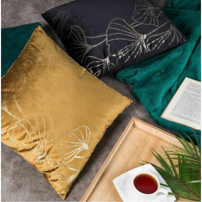 Jūsu iepirkumu grozs ir tukšs! Dekoratīvā spilvendrāna 45x45 Blink 11C piparmētru zelta velūra ginkgo lapas