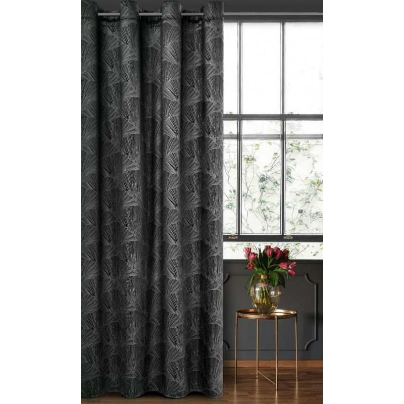 Jūsu iepirkumu grozs ir tukšs! Aizkars 140x250 Goja melns velūrs ar ginka lapām uz starplikām Pierre Cardin ar spīdīgu apdruku
