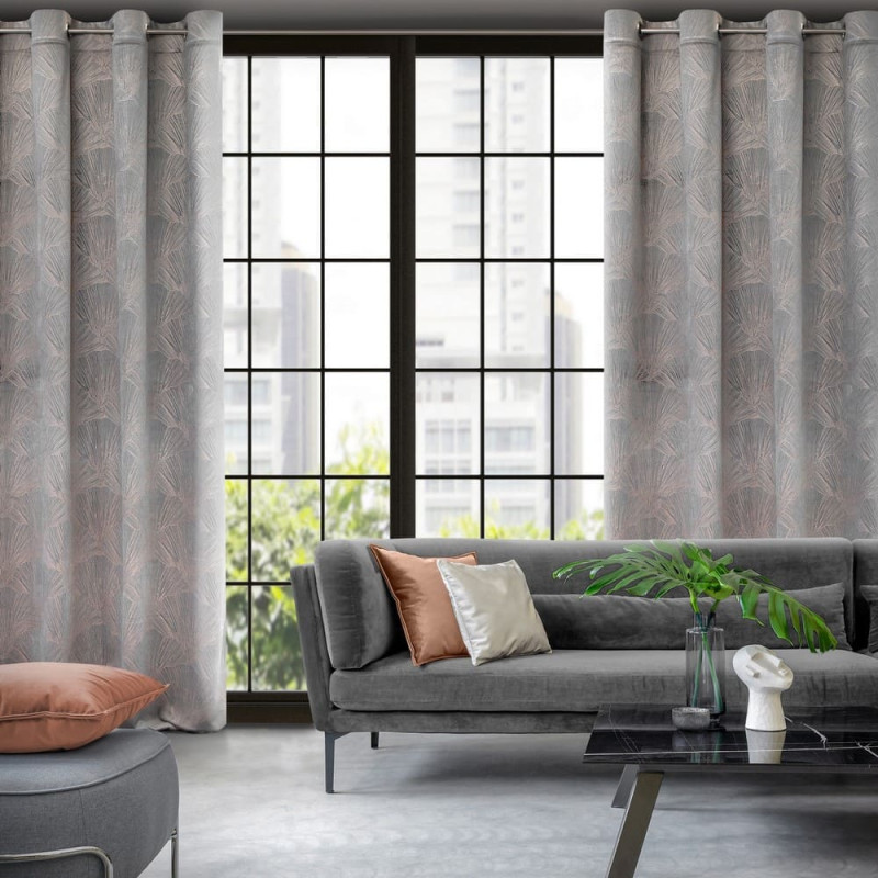 Jūsu iepirkumu grozs ir tukšs! Aizkars 140x250 Goja sudraba velūrs ar ginka lapām uz starplikām Pierre Cardin ar spīdīgu apdruku