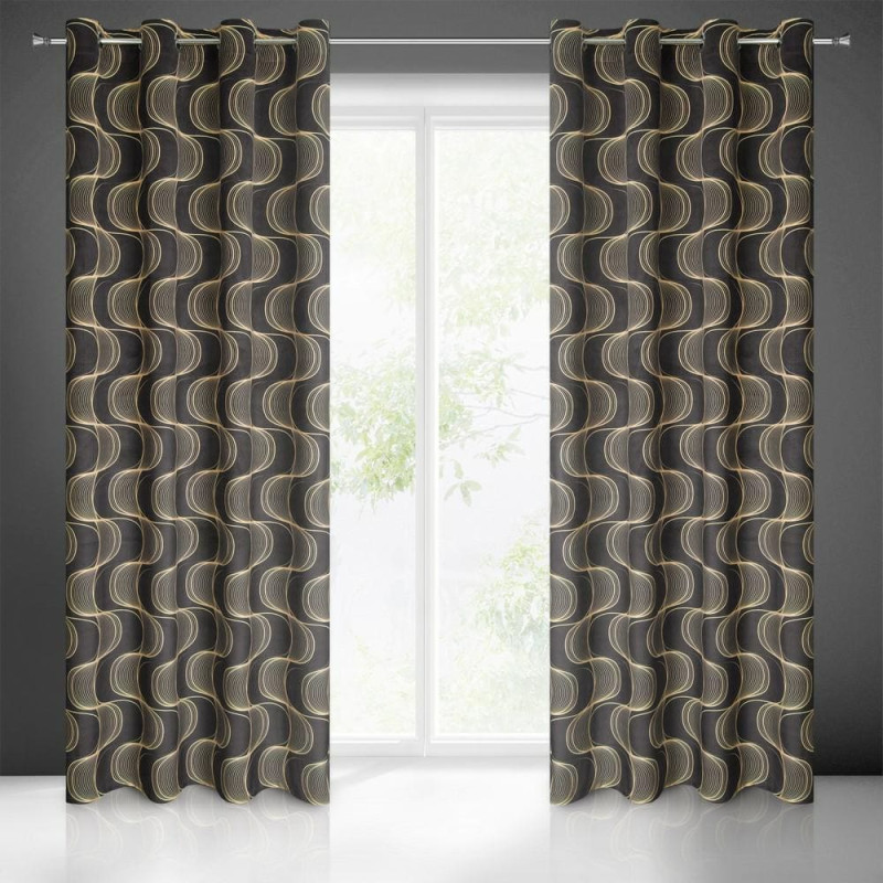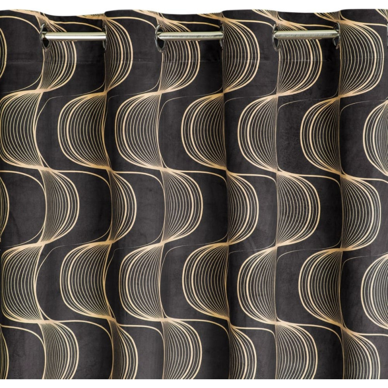 Jūsu iepirkumu grozs ir tukšs! Aizkars 140x250 Pola melns bēšs velūrs, gatavs uz starplikām ar simetrisku viļņotu rakstu