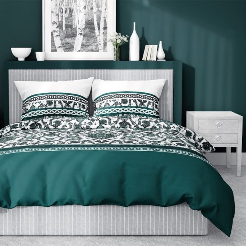 Jūsu iepirkumu grozs ir tukšs! Satīna gultasveļa 140x200 3670 Jūras zaļa balta Glamour ziedu rotājumi Sākums Satīns 3