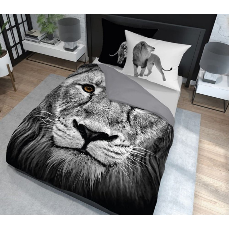 Jūsu iepirkumu grozs ir tukšs! Kokvilnas gultas veļa 220x200 3812 A Lew melna jauniešu pelēka Lions Lion Holland Natura 2