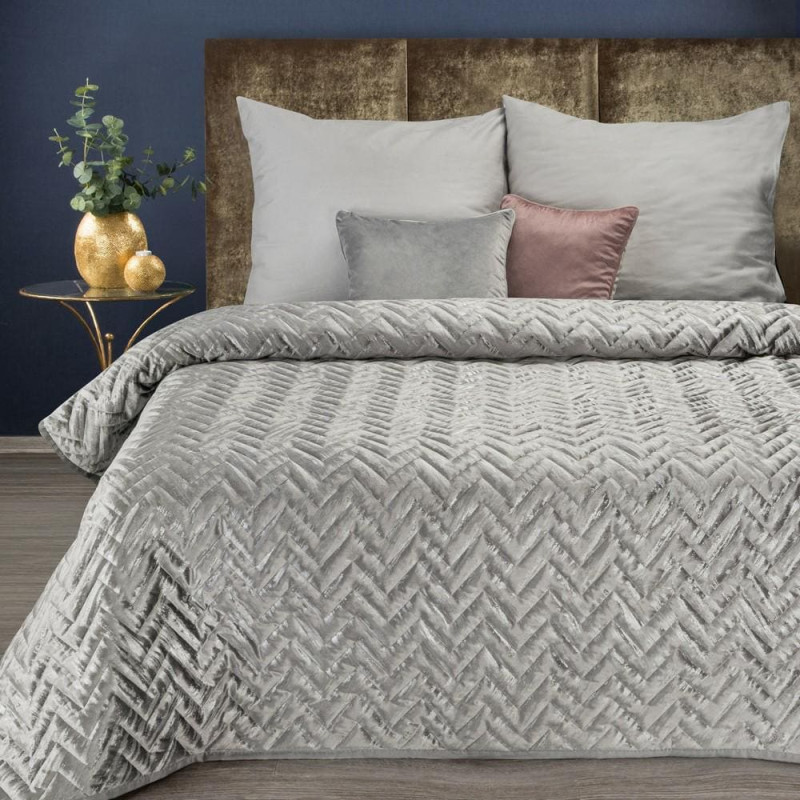 Jūsu iepirkumu grozs ir tukšs! Dekoratīvais gultas pārklājs 170x210 Agata 1 sudrabs ar sudrabaini raibu velūra apdruku
