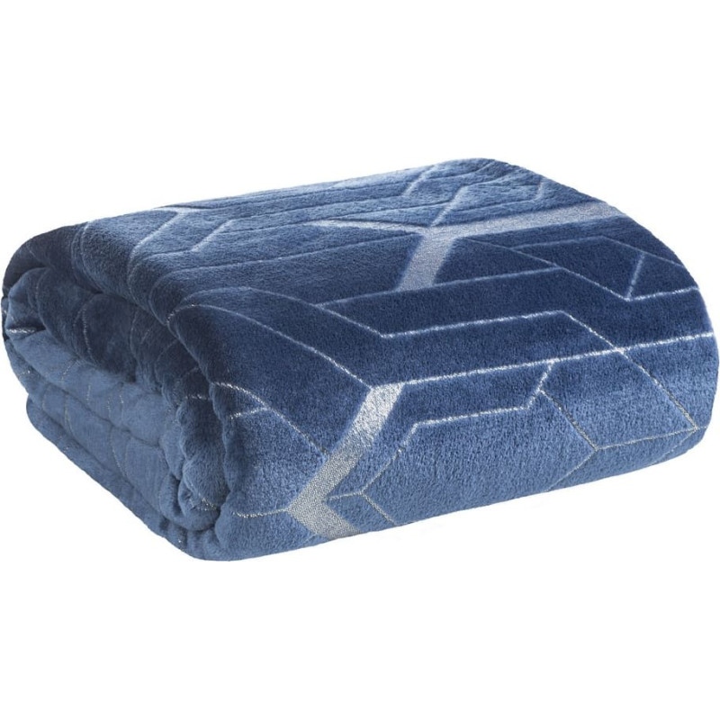 Jūsu iepirkumu grozs ir tukšs! Mikrošķiedras sega 150x200 Ginko 4 zila, dekorēta ar sudraba ģeometrisku rakstu