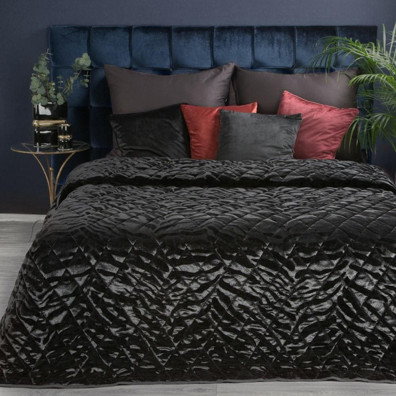 Jūsu iepirkumu grozs ir tukšs! Dekoratīvais gultas pārklājs 230x260 Kristin 3 melns velūra ģeometrisks ar dzīvnieka motīvu