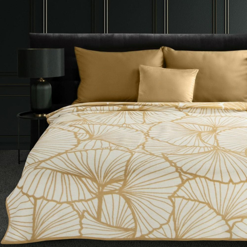 Jūsu iepirkumu grozs ir tukšs! Sega gultas pārklājs 150x200 Luna 3 balts bēšs ginkgo lapas kokvilna akrils abpusējs Limited Collection