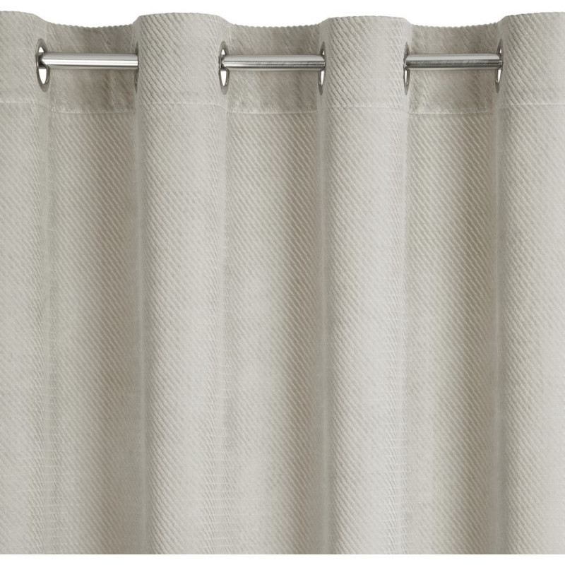 Jūsu iepirkumu grozs ir tukšs! Aizkars 140x250 Eliza bēšs gatavs ar cilpām velūrs ar nelielu reljefu ģeometrisku rakstu