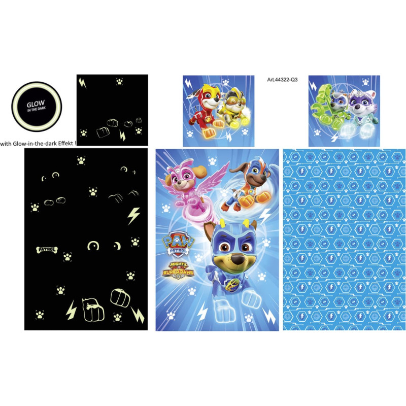 Jūsu iepirkumu grozs ir tukšs! Tumsā mirdzoša gultas veļa 160x200 Paw Patrol PP 13 DC Fluo