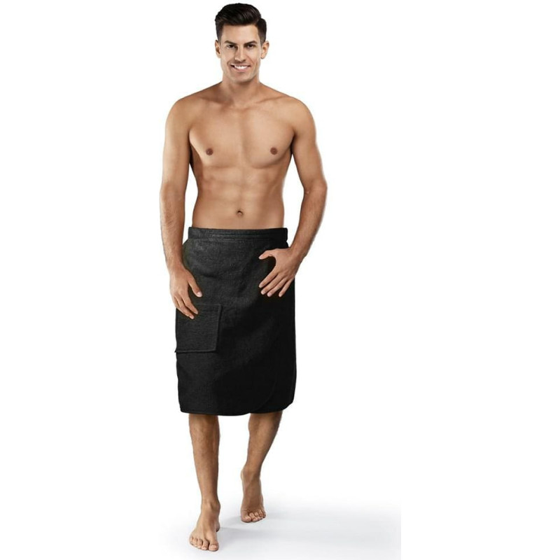 Jūsu iepirkumu grozs ir tukšs! Vīriešu pirts dvielis Kilt S/M melns frotē kokvilna