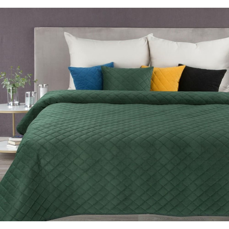 Jūsu iepirkumu grozs ir tukšs! Dekoratīvais gultas pārklājs 170x210 Milo zaļš tumši rombi velūra ģeometrija