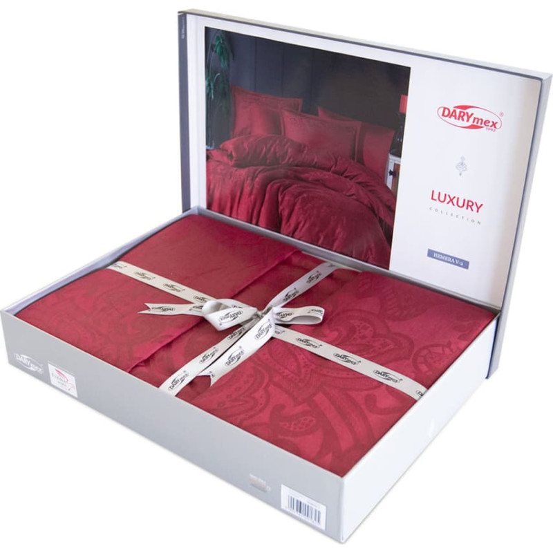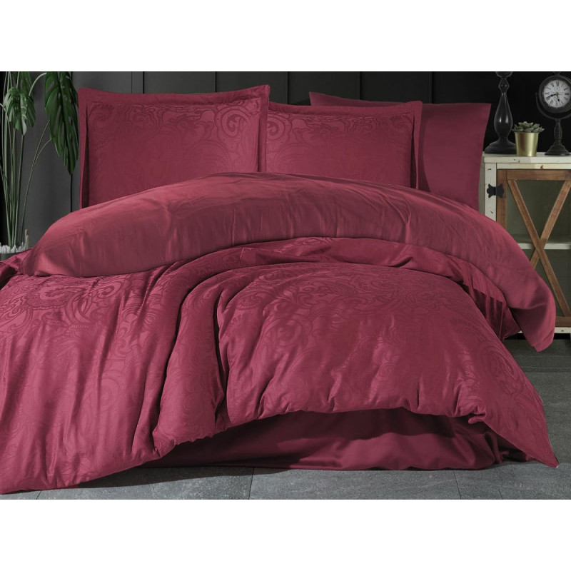 Jūsu iepirkumu grozs ir tukšs! Žakarda satīna gultas veļa 160x200 Hemera 2 bordo vienkrāsaini ornamenti kastītē