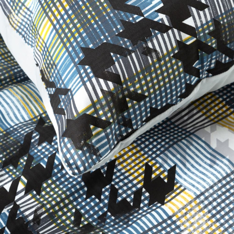 Jūsu iepirkumu grozs ir tukšs! Satīna gultas veļa 160x200 Mandy rūtaini zili dzelteni melni suņu zoba kastē