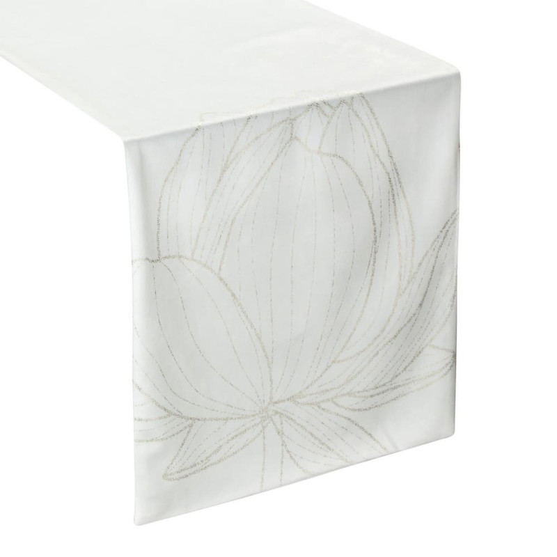 Jūsu iepirkumu grozs ir tukšs! Galda celiņš 35x220 Blink 12 baltā zelta velūra lotosa zieds