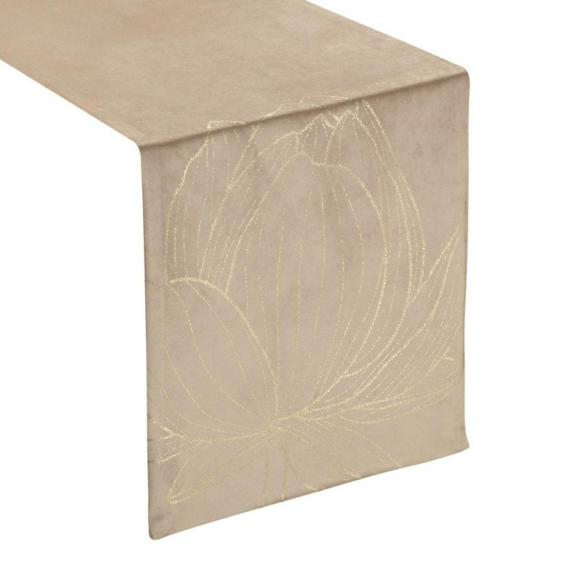 Jūsu iepirkumu grozs ir tukšs! Galda celiņš 35x220 Blink 12 bēša zelta velūra lotosa zieds