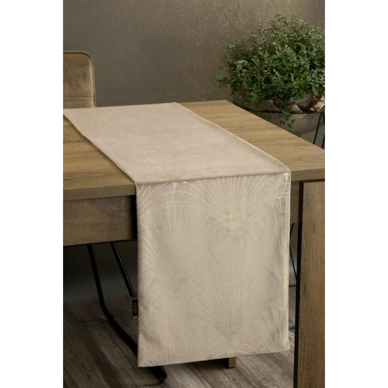 Jūsu iepirkumu grozs ir tukšs! Galda celiņš 35x220 Blink 14 bēša zelta velūra vēdekļi