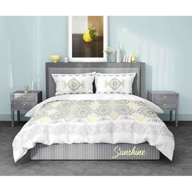 Jūsu iepirkumu grozs ir tukšs! Satīna gultas veļa 220x200 Sunshine Glamour balti dzelteni pelēki austrumu ornamenti Sākums Satīns 1