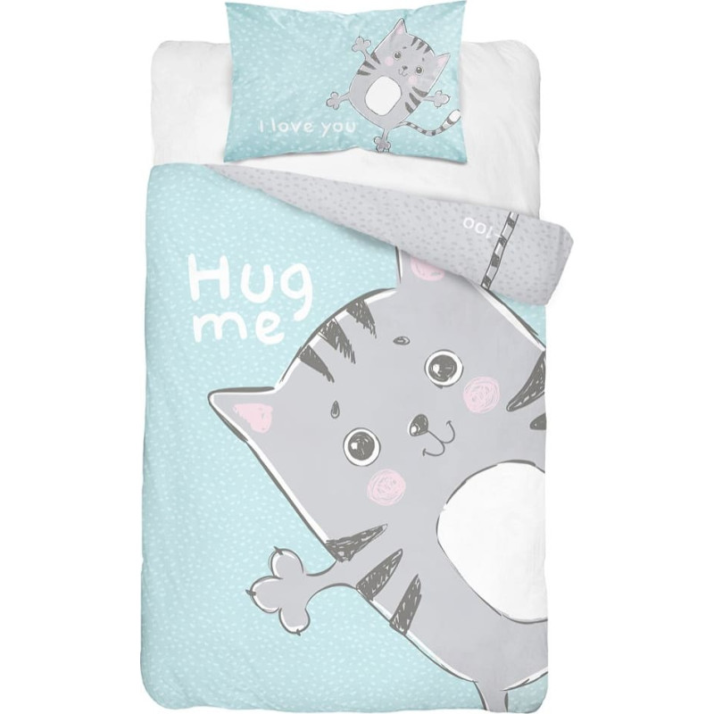 Jūsu iepirkumu grozs ir tukšs! Kokvilnas gultas veļa 90x120 Kotek 3615 B piparmētru pelēks draiskulis apskauj mani bērnu leopards Kids 1