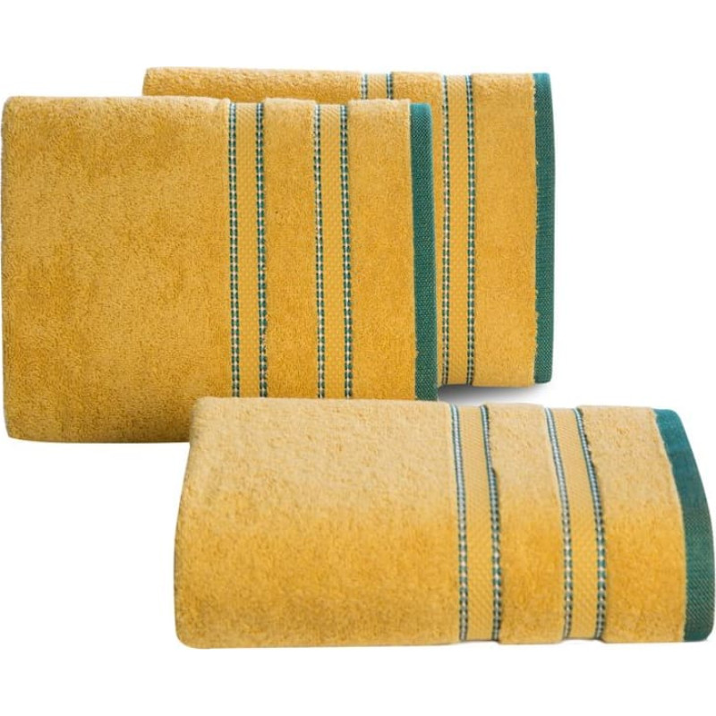 Jūsu iepirkumu grozs ir tukšs! Dvielis 100x150 Kristi sinepes ar dekoratīvu apmalīti frotē svītrās 500g/m2