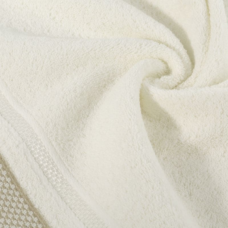 Jūsu iepirkumu grozs ir tukšs! Kinga krēma dvielis 70x140 ar dekoratīvu svītrainu apmali 485g/m2 frotē