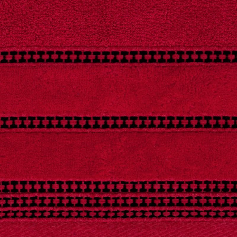 Jūsu iepirkumu grozs ir tukšs! Dvielis 30x50 Amanda sarkans ar dekoratīvu velūra apmalīti frotē svītrās 500g/m2