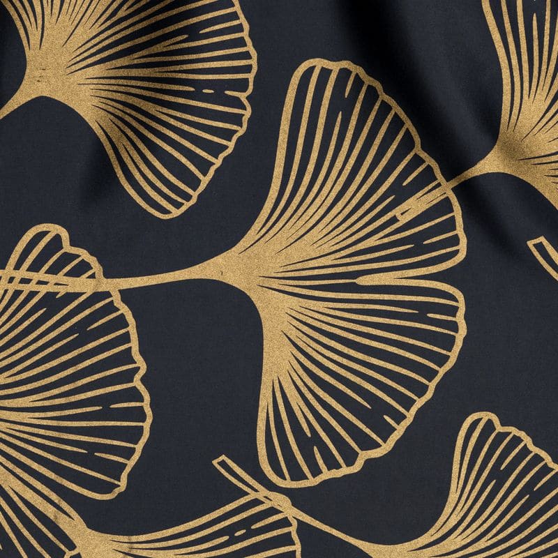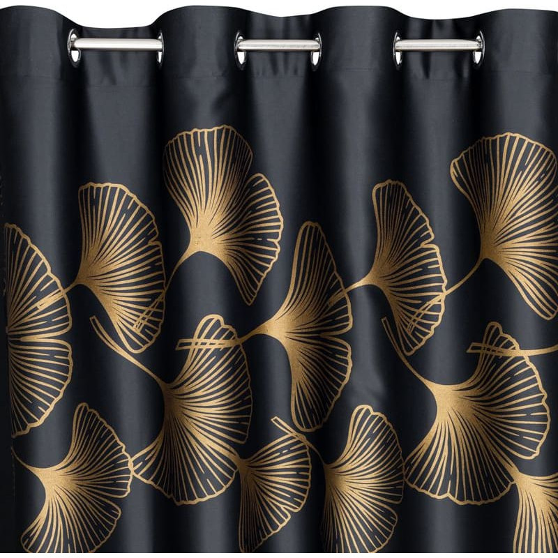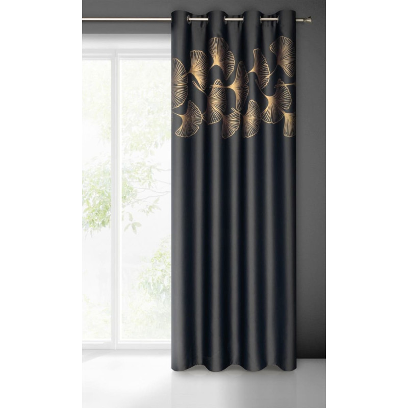 Jūsu iepirkumu grozs ir tukšs! Aizkars 140x250 Harmony melnā un zelta ginkgo lapas, kas ir gatavas uz starplikām