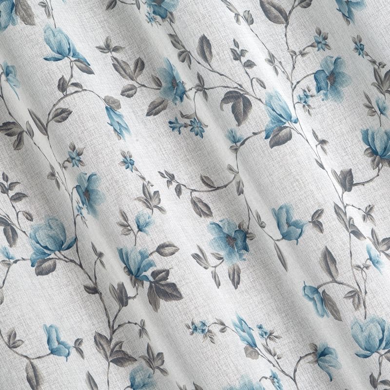 Jūsu iepirkumu grozs ir tukšs! Aizkars 140x250 Jenny white blue gatavs uz starplikām, kas izgatavotas no viegla eko stila marles ar ziedu motīvu