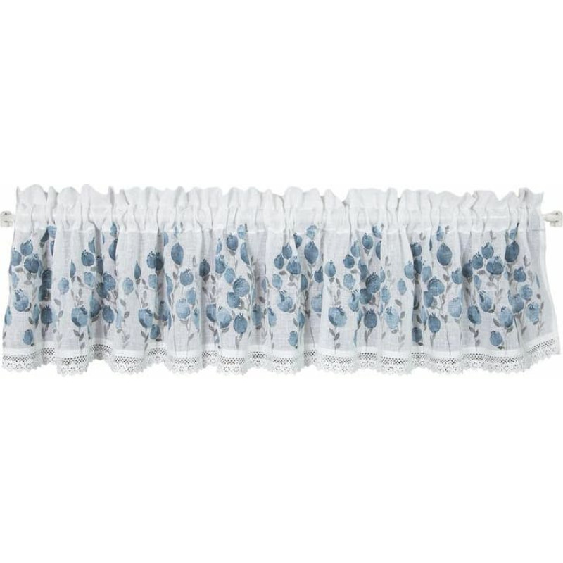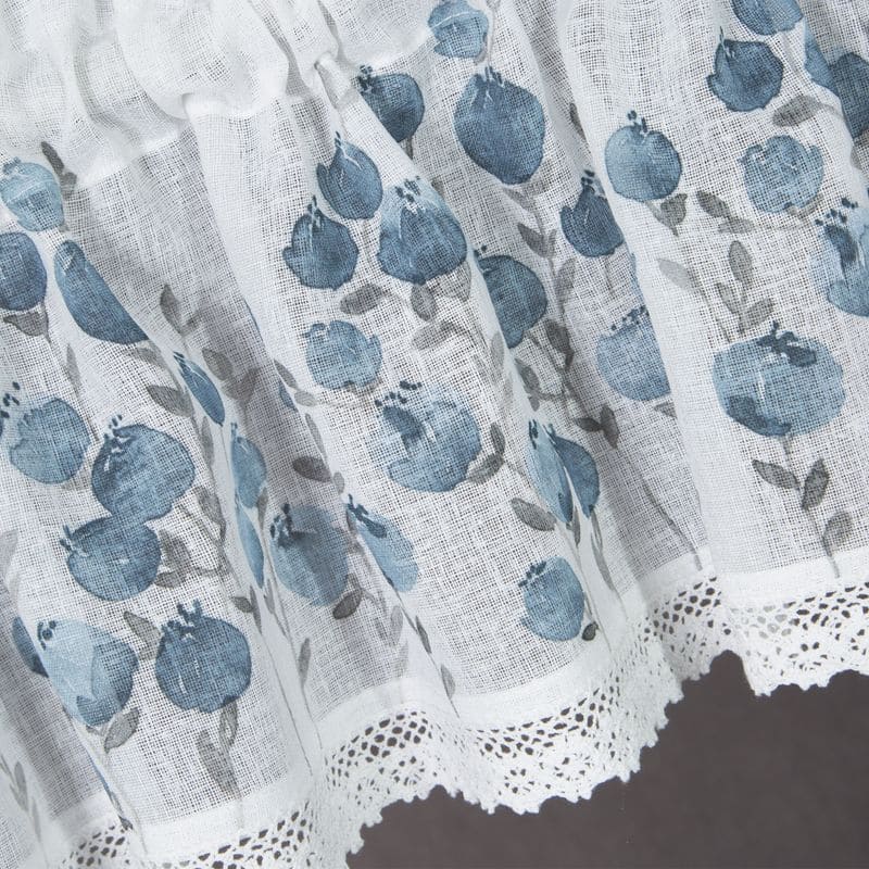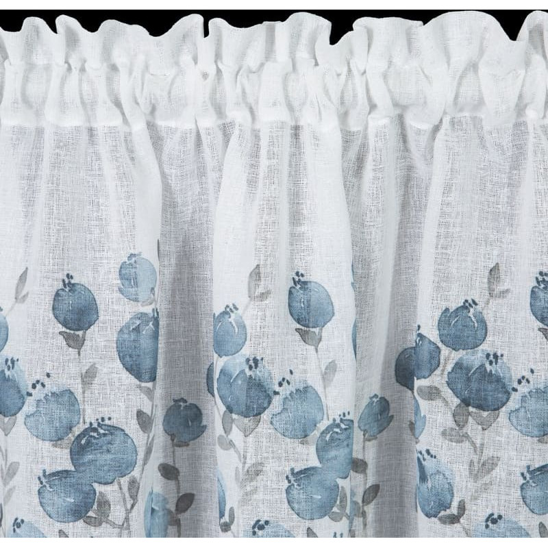 Jūsu iepirkumu grozs ir tukšs! Greizsirdība 30x150 Pola balts zils ziedu raksts gatavs tuneļa ziedu rakstam no matēta auduma ar mežģīnēm