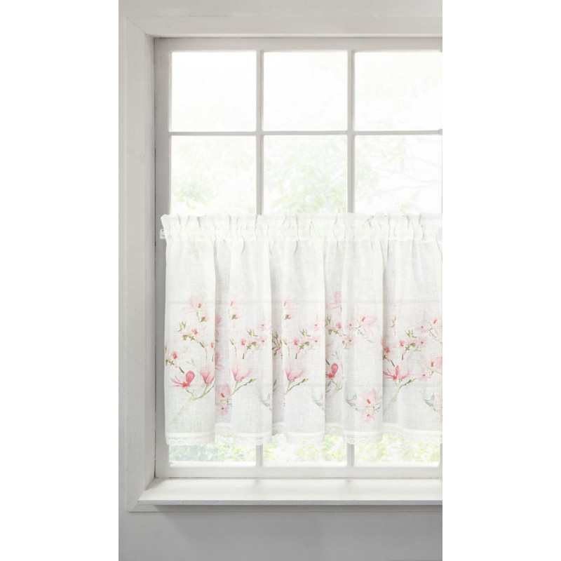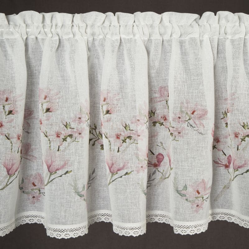 Jūsu iepirkumu grozs ir tukšs! Greizsirdība 60x150 Amelia balts rozā gatavs tuneļa ziedu raksta aizkars