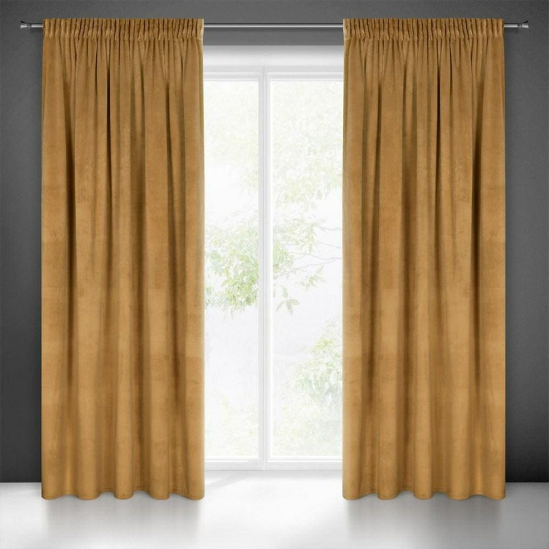 Jūsu iepirkumu grozs ir tukšs! Aizkars 140x270 Melanie zelta velūrs gatavs uz lentes