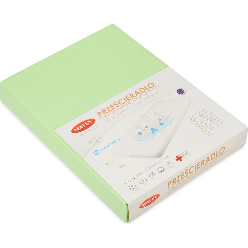 Jūsu iepirkumu grozs ir tukšs! Ūdensizturīgs pieguļošs palags 140x200 52 zaļš džersijs ar elastīgu pamatni